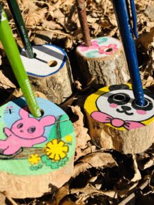 木の円板に絵をかいて、ペンスタンドを作ってみよう!